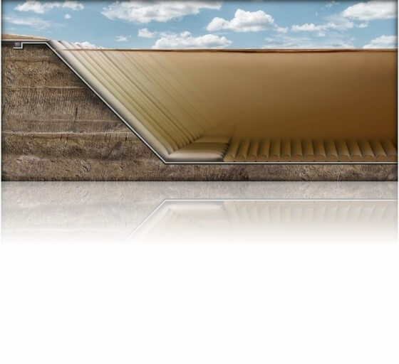 Módulos laterais são alocados facilmente, aumentando a área de contato com carga pontual controlada, evitando com que os revestimentos internos das lagoas possam se elevar ou até mesmo se romper, em função de presença de material orgânico, gases e possíveis pontos erosivos internos.